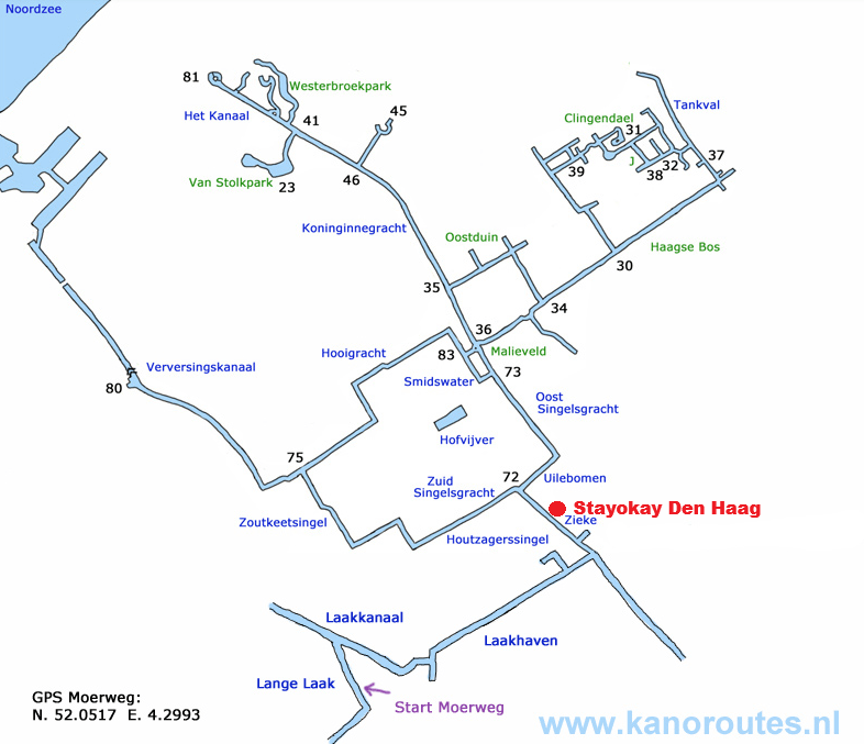 Aanbevolen route: Stayokay Den Haag – 72 – 75 – 83 – 73 – 72 – Stayokay Den Haag
